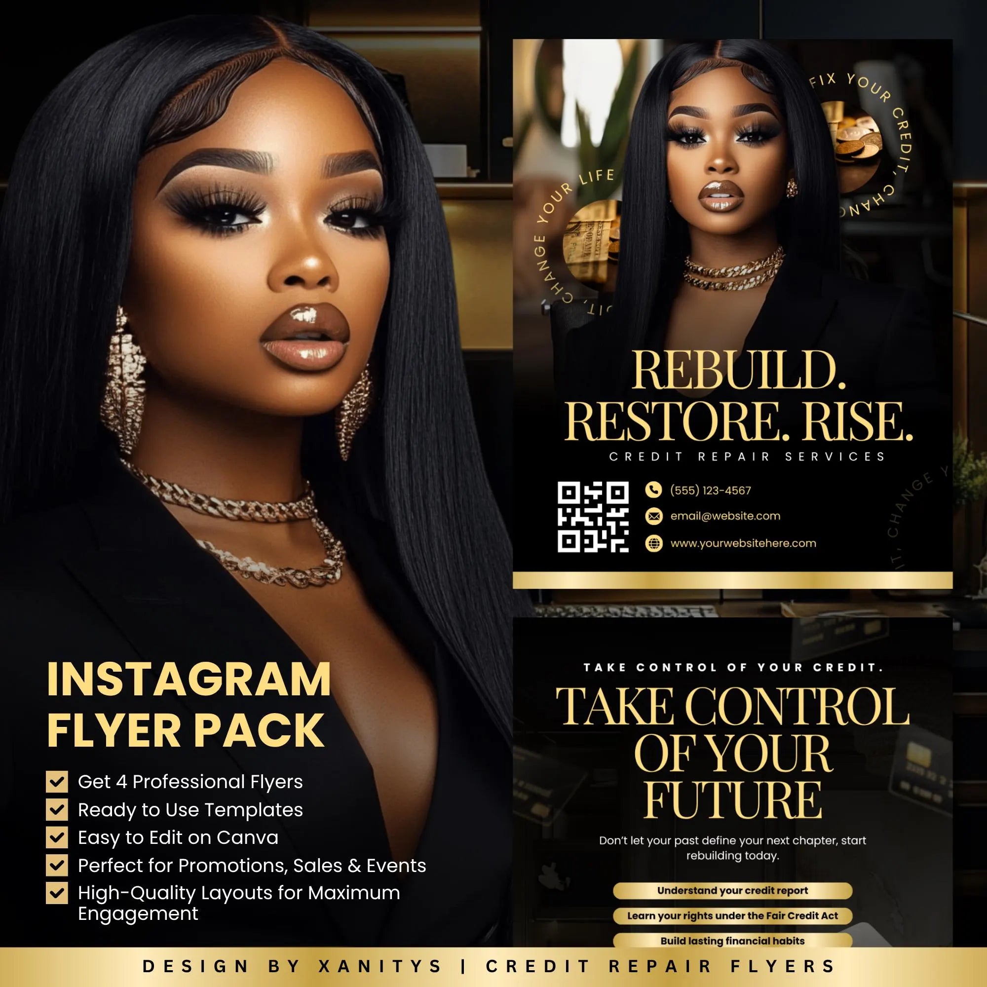 In this Editable Canva Credit Repair Flyer Template you can edit:
